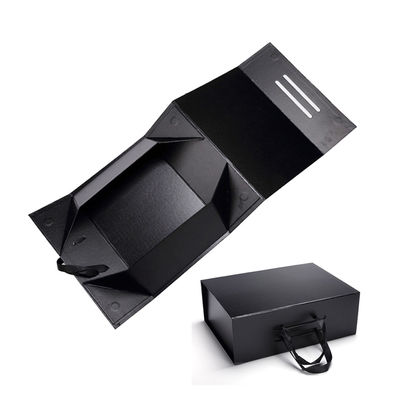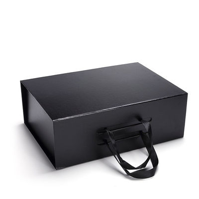 गारमेंट्स रिबन हैंडल आयताकार तह कपड़ों के लिए कस्टम ब्रांडिंग मैट ब्लैक मैग्नेटिक क्लोजर पेपर गिफ्ट बॉक्स